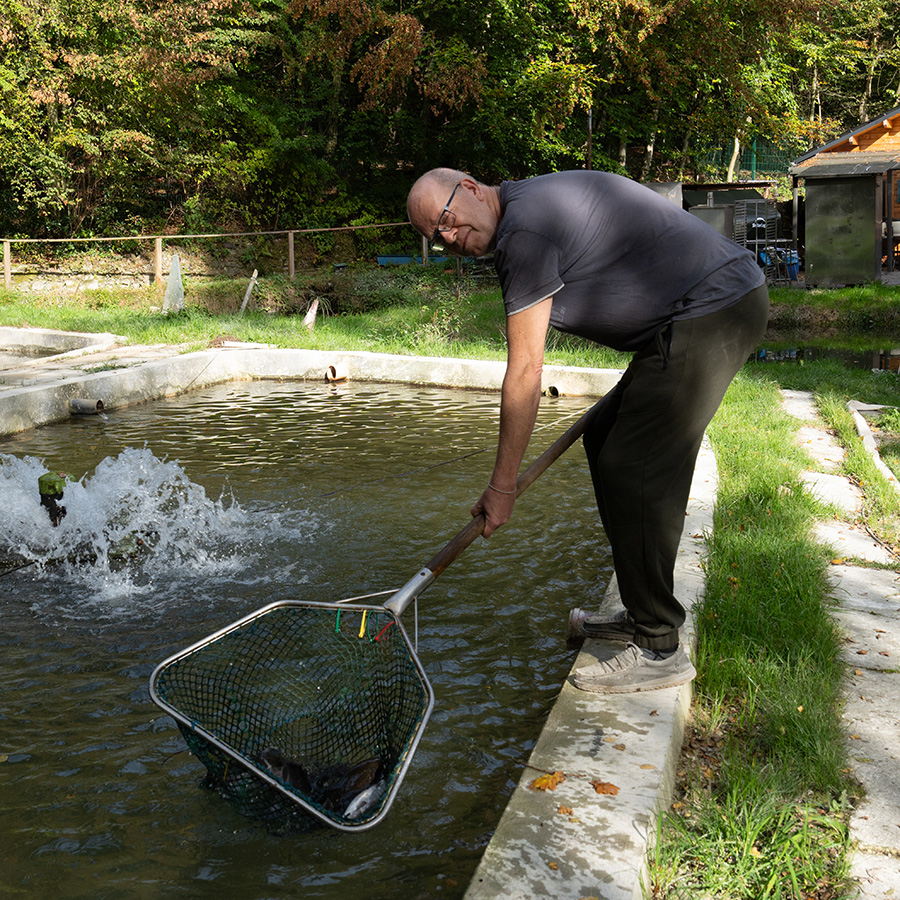 Hier gibt es Forellen, Lachsforellen, Saiblinge, Karpfen, Aale und weitere Delikatessen entweder frisch aus den Fischteichen, mariniert oder aus dem Räucherofen des Familienbetriebes.