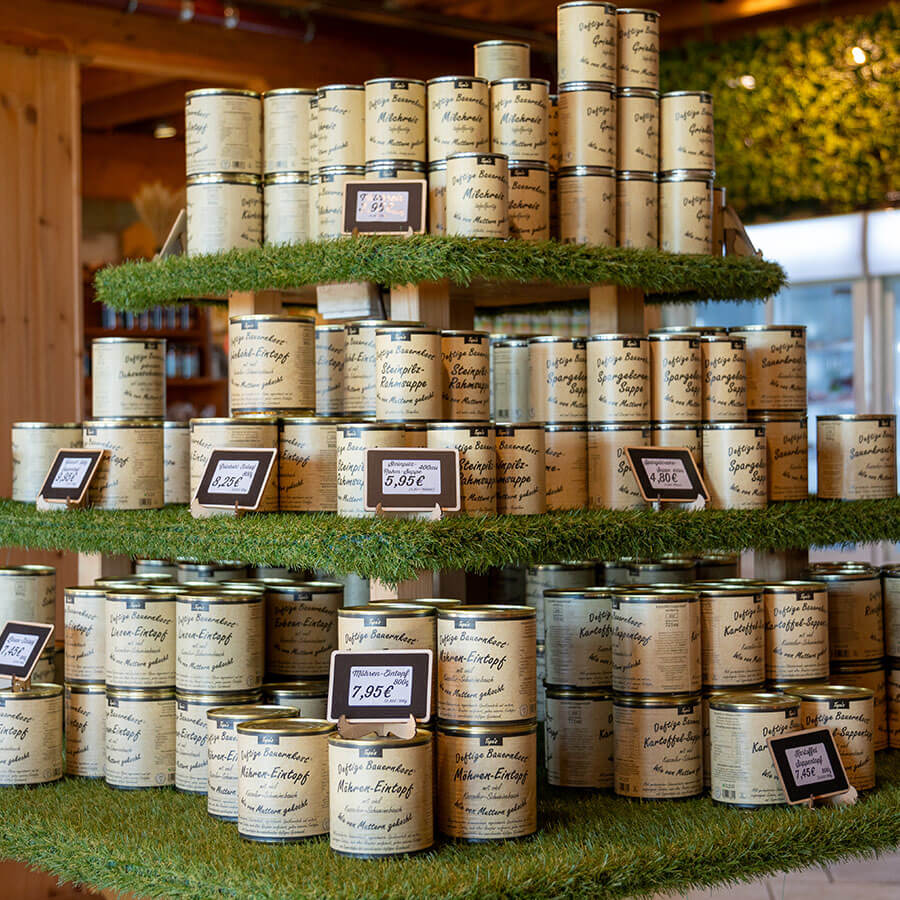 Der barrierefreie XXL-Hofladen bietet eine große Produktpalette an, wobei viel Wert auf nachhaltige Beschaffung gelegt wird.