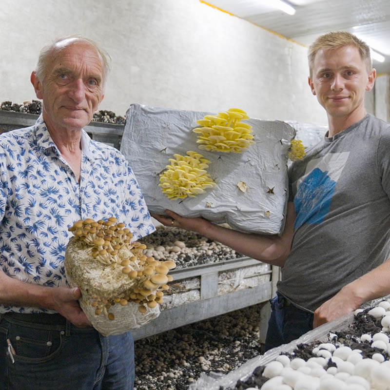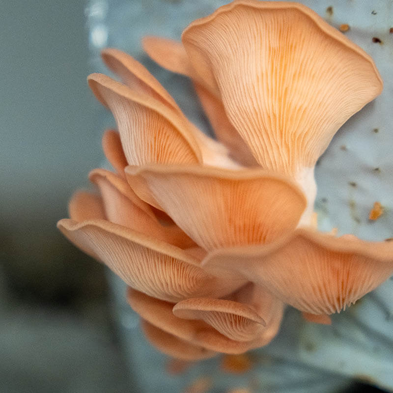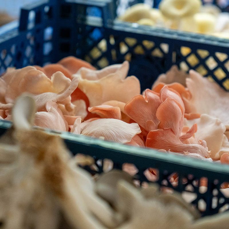 Hier schlagen die Herzen von Pilzliebhaber*innen höher. Von den klassischen weißen und braunen Champignons über Austernseitlinge, Kräuterseitlinge, Limonenseitlinge, Shiitake, Rosenseitlinge, Kastanienseitlinge, Pom Pom Blanc, Pom Pom Frise und Samthaube kann sich in der Leichlinger Champignonzucht ganzjährig durch ganz verschiedene Pilzsorten aus eigenen Anbau probiert werden.