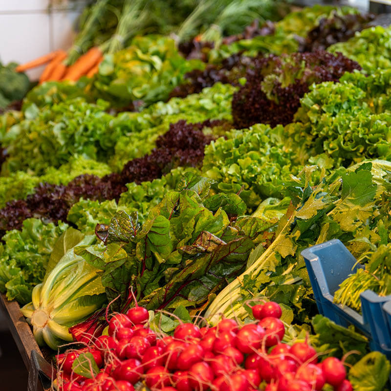 Um die vierzig verschiedene Gemüsesorten werden hier angeboten, die zu circa 90 Prozent aus eigenem Anbau stammen – dazu gibt es noch einige Obstsorten. Von Gemüsejungpflanzen über eine breite Blumenauswahl bis hin zu selbstgepflanzten und dekorierten Blumenschalen und Töpfen ist hier für Blumenliebhaber*innen und Gärtner*innen alles dabei.